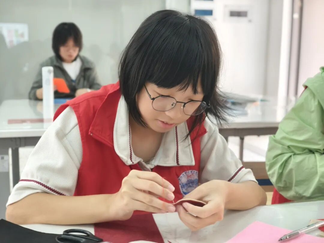 学生们分组协作,利用各色不织布材料,通过剪裁、缝纫和拼接,制作出包括卡通玩偶、创意卡套、蔬果造型饰品等多种生动有趣的作品。活动中,大家专注投入,积极交流技法,现场氛围热烈而有序。该综合实践课程促进了环保意识与团队合作精神的培养,充分展现了手工制作的实践价值和艺术魅力。