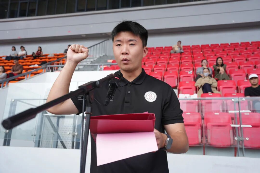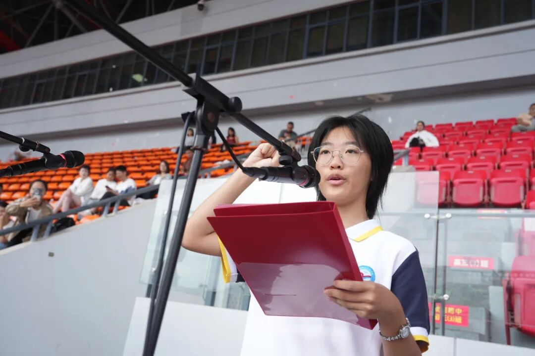 书记充满鼓舞力量的致辞结束后,大会进入了庄严的宣誓环节。毕致远老师作为裁判员代表,初三4班邓佩雯同学作为运动员代表,先后郑重宣誓,分别表达了恪守准则、公正裁决与尊重规则、奋勇拼搏的决心。