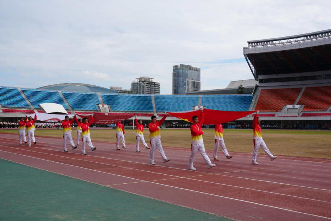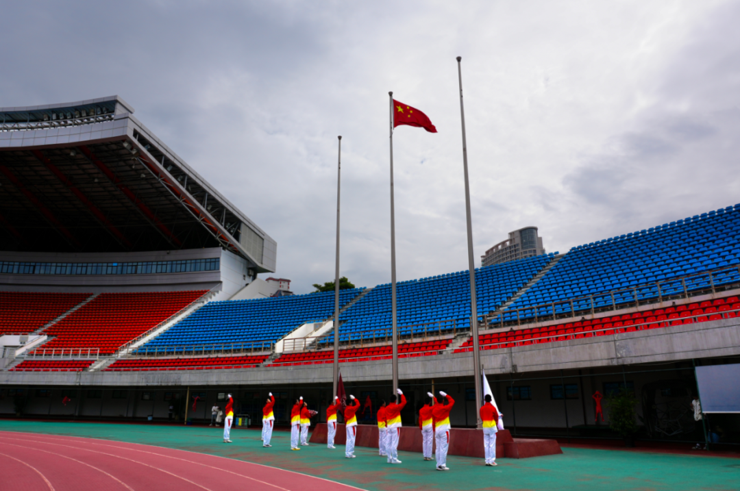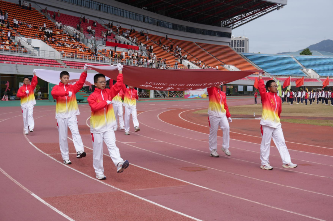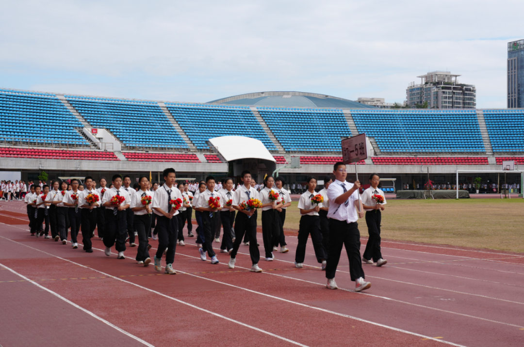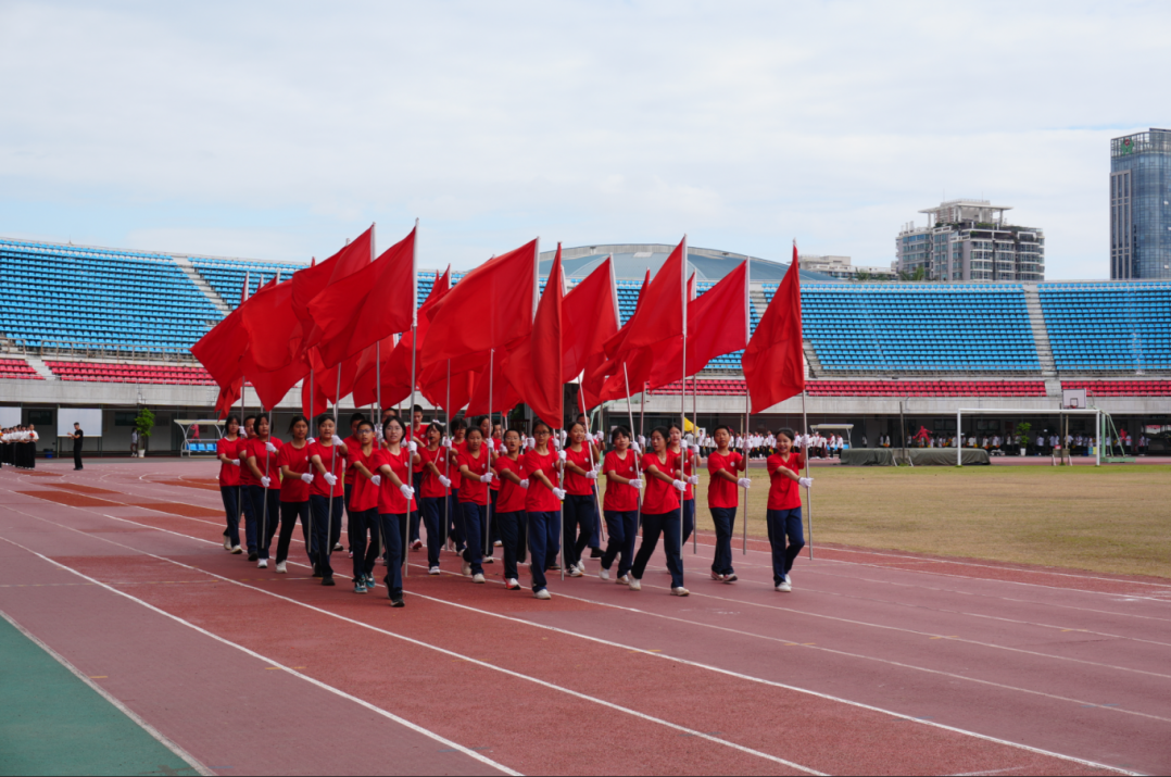 在激昂的旋律中,校旗、会旗、红旗及花束方阵紧随国旗方阵入场,精神抖擞、气势如虹。每一个飒爽的身影、每一道坚定的目光,都饱满地展现了二十二中人昂扬向上、勇往直前的精神风貌。