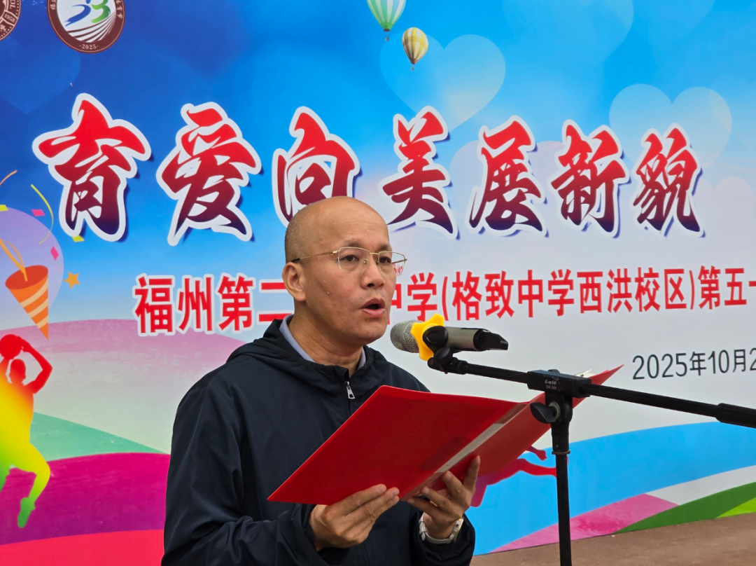 在开幕式致辞中,陈琛书记首先代表校运会组委会对运动会的召开表示热烈祝贺,并向参与本次活动的全体人员致以诚挚的感谢与崇高的敬意。陈琛书记强调,学校秉持“以爱育爱 向美而行”的校训,坚持五育融合,体育更是其中不可或缺的一环。陈琛书记指出,一年一度的运动会意义深远,它既是对学校体育教学与竞技水平的一次集中验收,也是我校师生昂扬精神与卓越素养的一次生动展现。