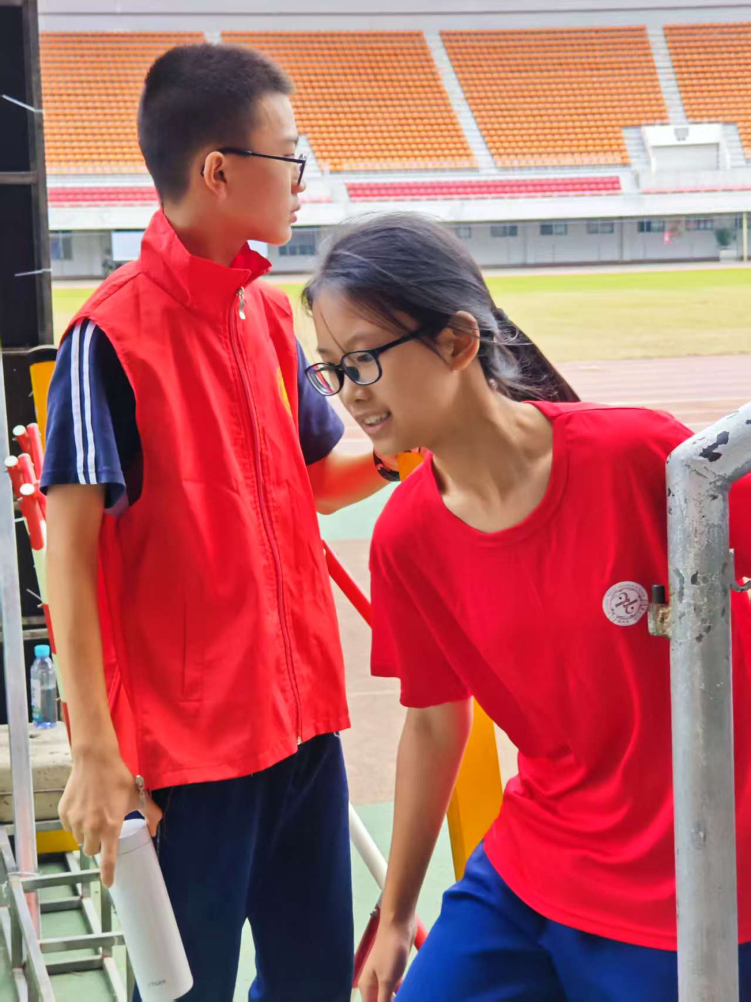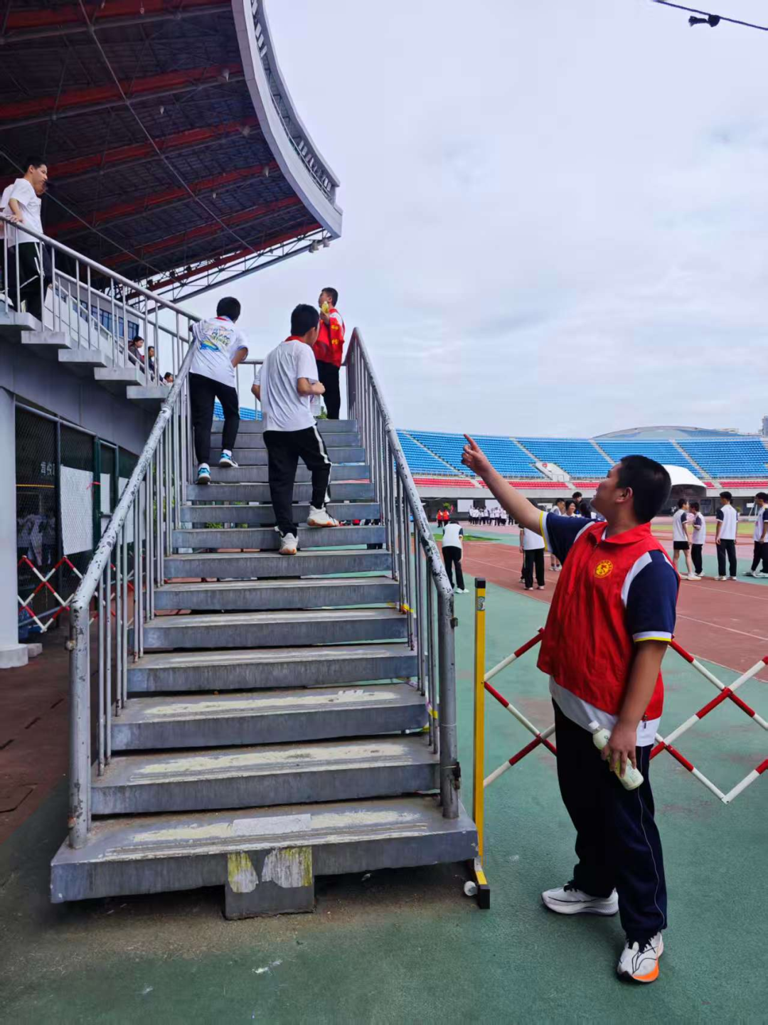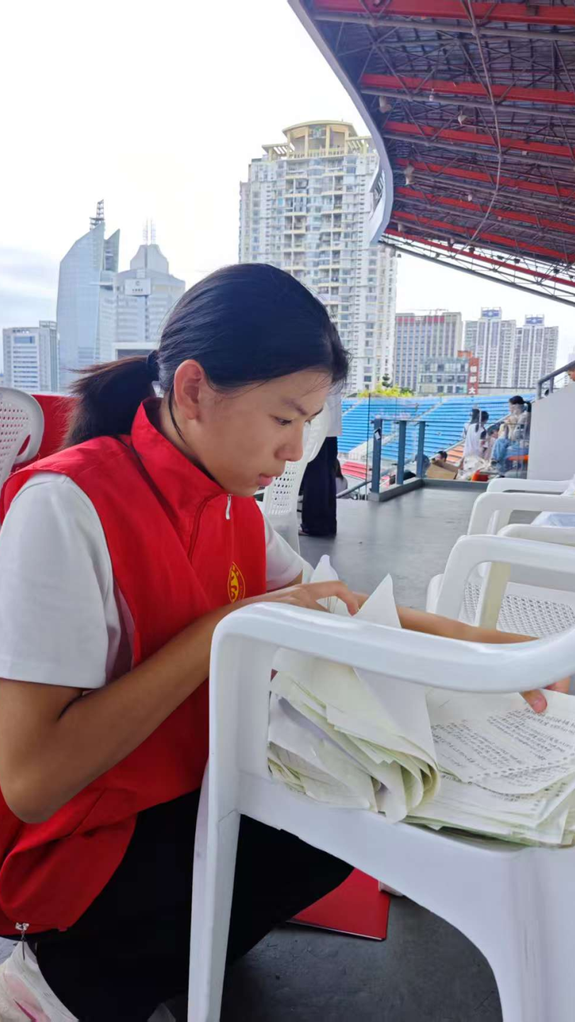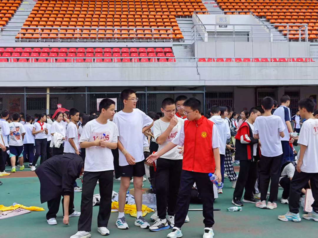 在检录处,志愿者们一丝不苟地核对运动员信息,维持着现场的秩序。在跑道旁,他们拉起警戒线,提醒观众保持安全距离,用小小的身躯筑起一道道安全的屏障。当有运动员不慎摔倒或体力不支时,他们总是第一时间冲上前去,或搀扶,或递水,或迅速联系医疗点。那份沉着与冷静,那份关切与温柔,让紧张的赛场充满了人文关怀的暖意。他们用责任心,守护着赛场的秩序与每一位运动员的安全。