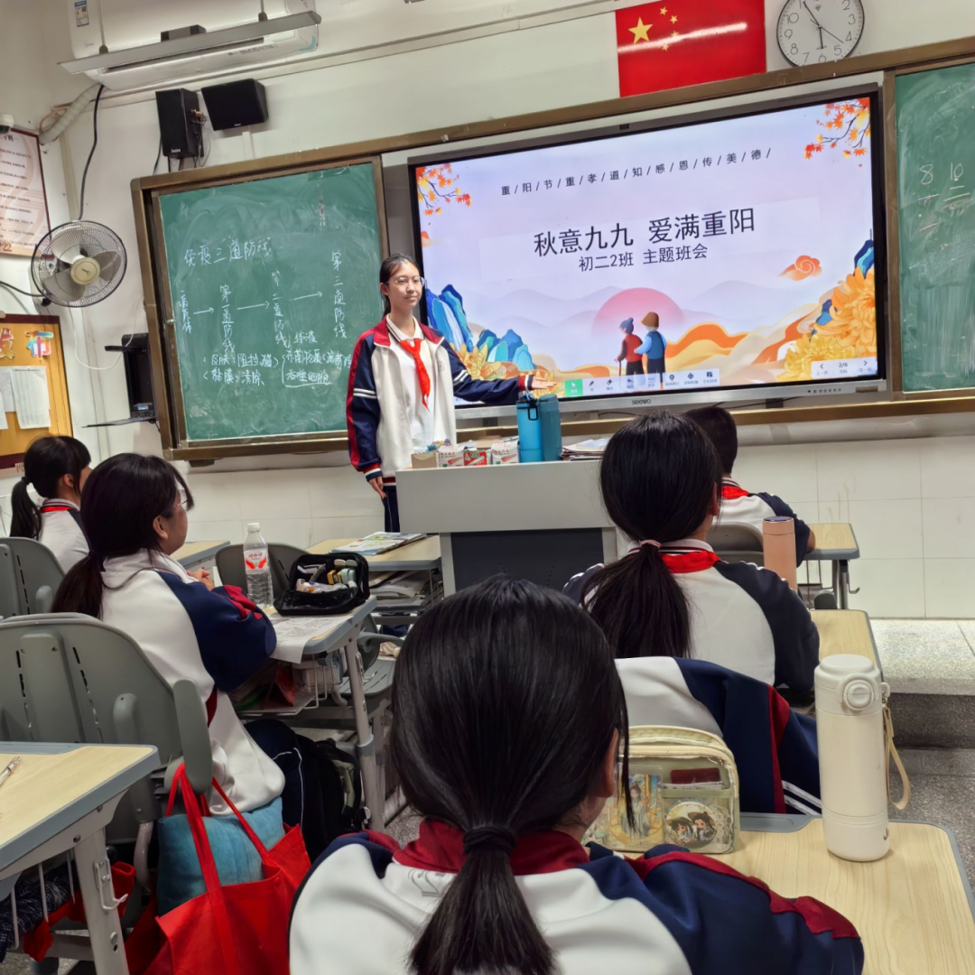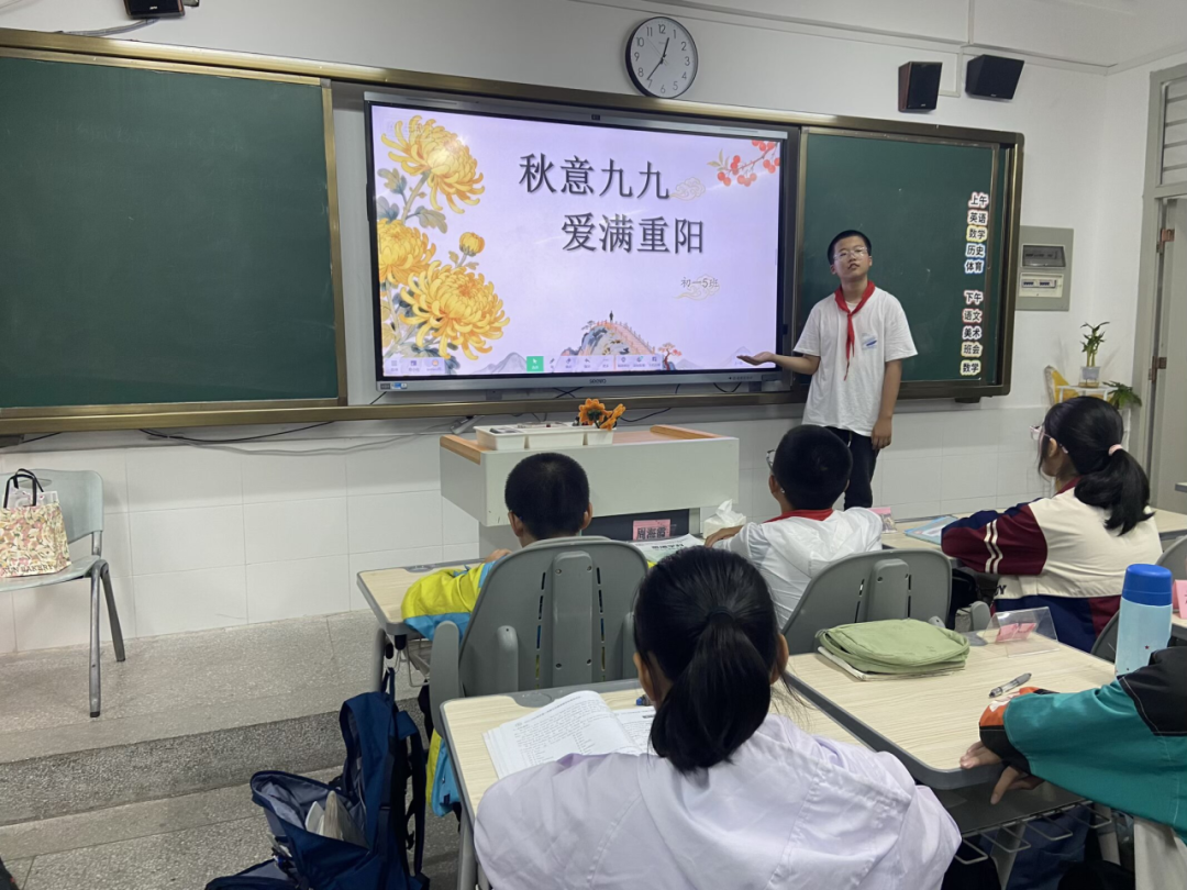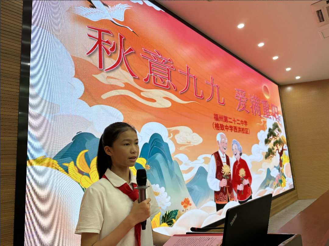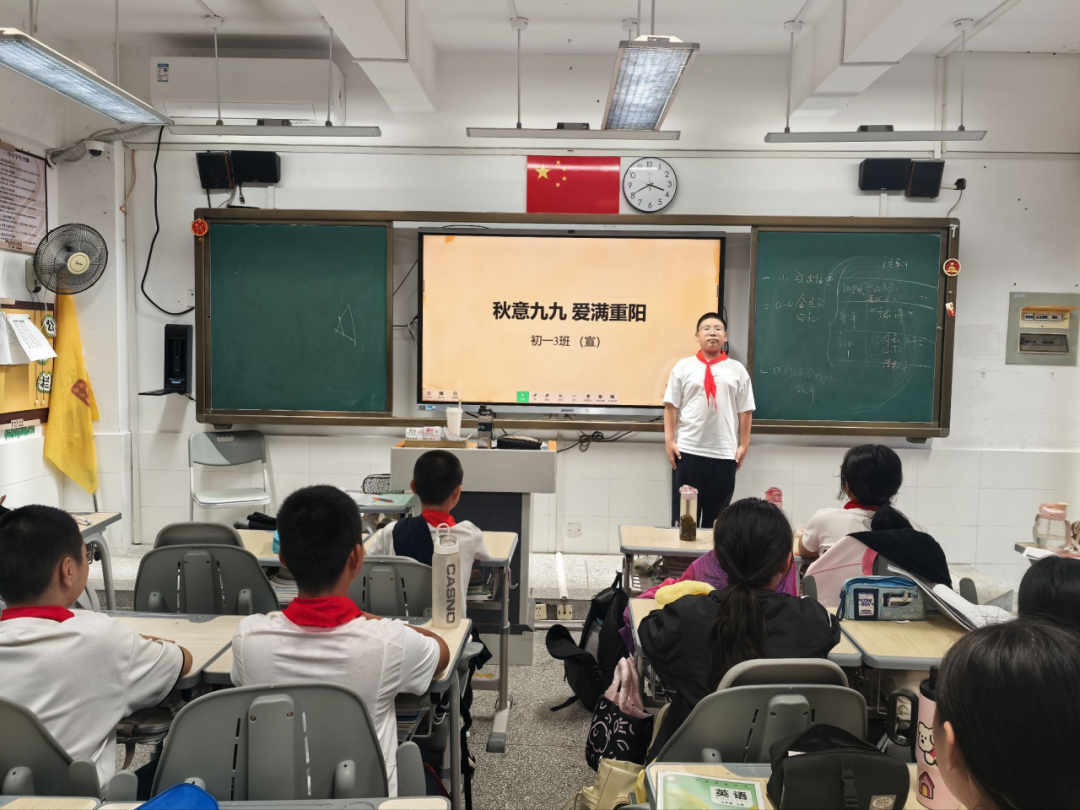 初一(3)班章雨悦同学在国旗下讲话中,讲述了重阳节的由来与意义,“老吾老以及人之老”,敬老不仅是对自家老人的关爱,更是一种社会责任,我们是新时代的少年,更应该传承这份美好的传统。让我们从现在做起,把敬老的心意融入日常,用行动温暖每一位老人的心,相信当我们学会感恩长辈、关爱老人,我们的家庭会更幸福,我们的社会也会更温暖!